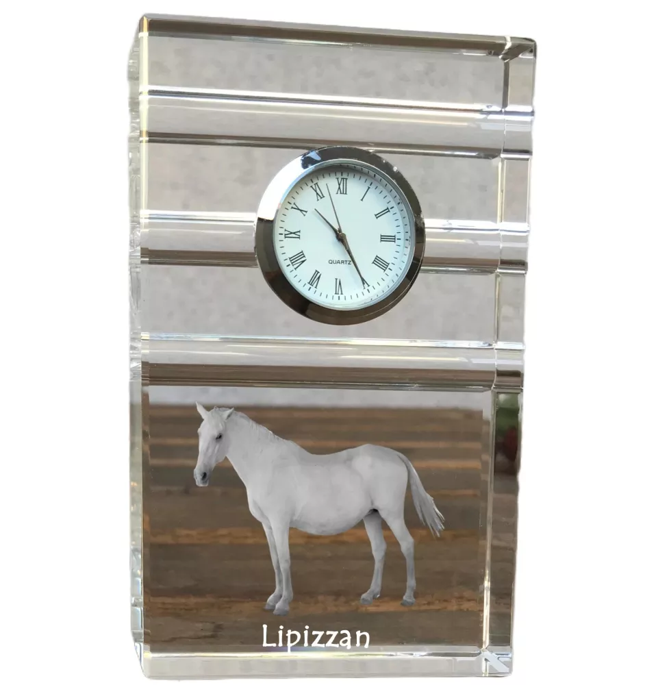 Lipizzan - glass clock with a photo, photo of a horse in crystal, personalized standing office clock by Art-Dog brand