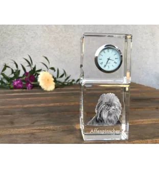 Affenpinscher, Affen, Affie - crystal clock with a photo, a photo of a dog in crystal, personalized desk clock by Art-Dog brand
