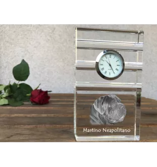 Neapolitan Mastiff, Mastino Napoletano - glass clock with a photo, photo of a dog in crystal, personalized standing office clock by Art-Dog brand