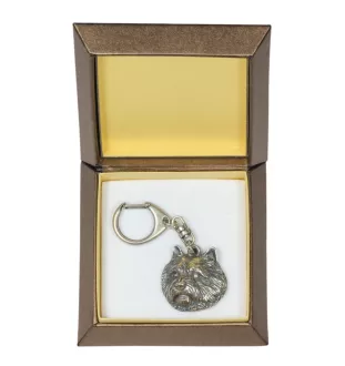 Norwich Terrier - Silver-plated key ring with a dog in a gift box, handbag decoration, backpack pendant by Art-Dog brand
