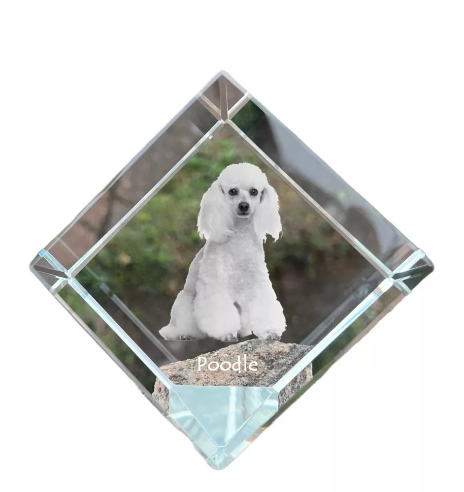 Poodle - crystal cube with a photo, photo of a horse in crystal, cubic paperweight from Art-Dog brand