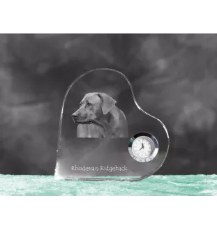 Rhodesian Ridgeback, African Lionhound, African Lion Dog - crystal clock with a dog picture, heart-shaped shelf clock, personalized standing clock by Art-Dog brand