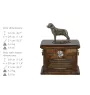 Handcrafted from birch wood, the urn is adorned with aesthetic wreaths, with the central feature being a statue of a dog. The figurine is securely attached to a removable lid. The urn is equipped with convenient brass handles. The front of the urn features engraved plaques with text that can be customized. Provide your dog's name, date of birth and death, and if desired, a quote, and we will engrave it on the urn, creating a unique memorial for your pet.