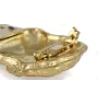 Fans of elegant accessories and dog lovers will surely appreciate our gold-plated brooch with a clip, perfect for displaying a race number at sports events or dog shows. This unique pin with a realistic image of a purebred dog is not only a practical but also a stylish accessory.