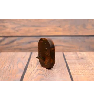 We present a unique wooden hanger with a dog motif - handmade and one-of-a-kind decorative element that will add elegance and practicality to your interior. Made of pine wood, the hanger is decorated with a silver-plated bas-relief of a dog, distinguished by precision and intricate craftsmanship. It can serve as a traditional clothes hanger, perfect for leashes and dog accessories, as well as for medals won at dog shows or keys. Its versatile use and elegant design make it a perfect gift for any dog lover!