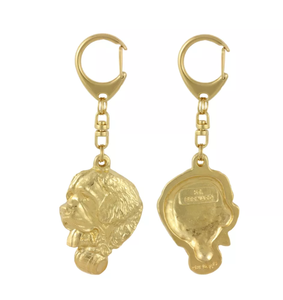 St. Bernard, Saint Bernard, Alpine Mastiff, Bernhardiner - Gilded key ring with dog, handbag decoration, luxury accessory by Art-Dog brand