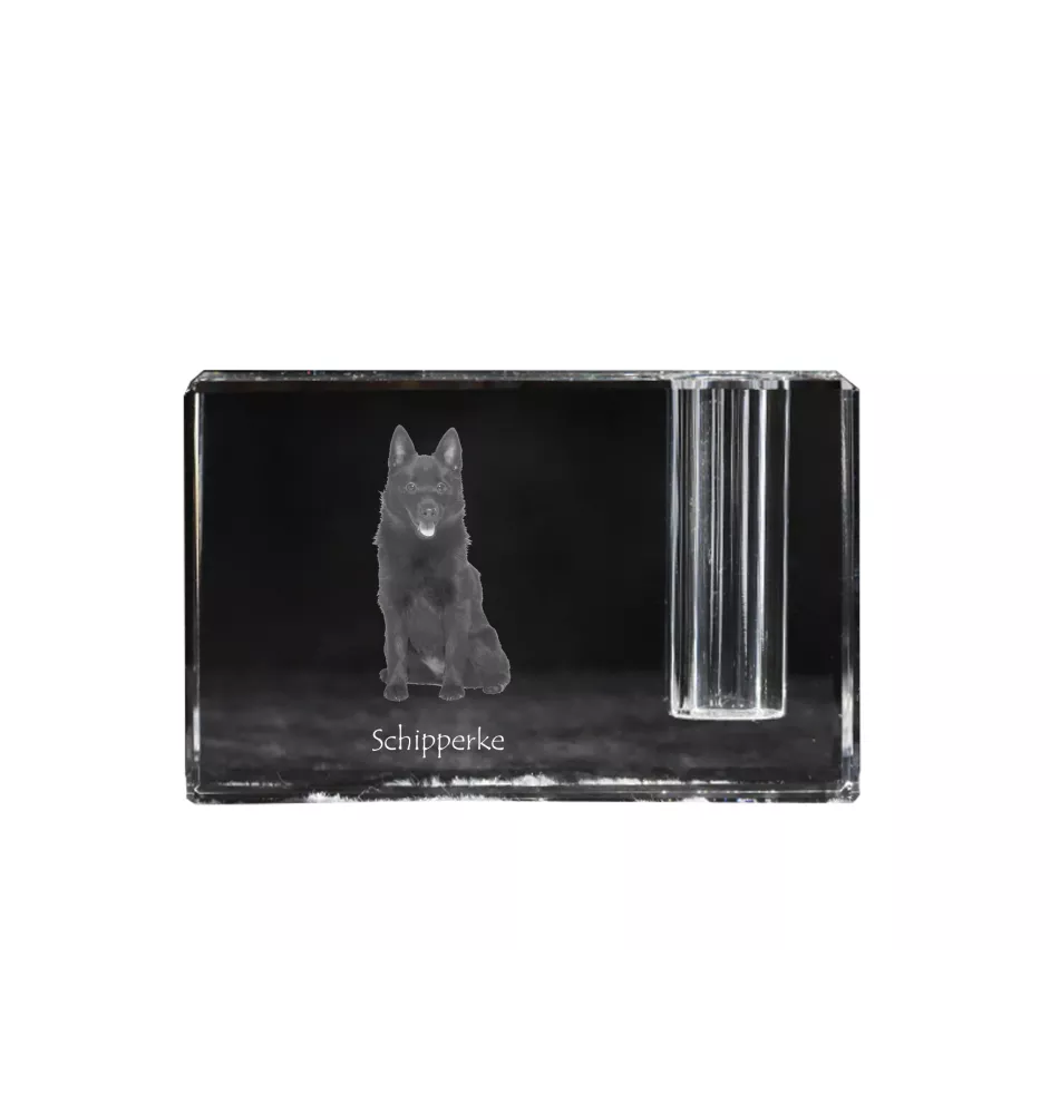 Schipperke, Little Black Devil, Little Captain - Pen stand, crystal organiser with dog photo, unique desk decoration by Art-Dog brand