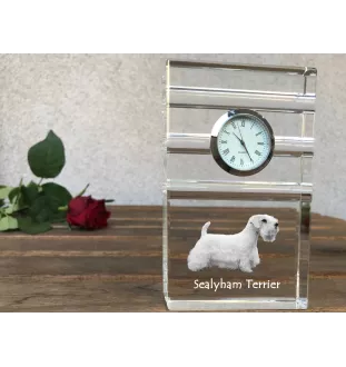 Sealyham Terrier, Welsh Border Terrier, Cowley Terrier - glass clock with a photo, photo of a dog in crystal, personalized standing office clock by Art-Dog brand