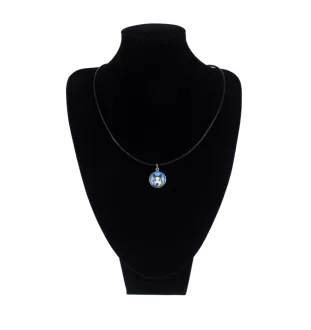 Pendant suspended on a strap, 50 cm long, photo diameter 14 mm.