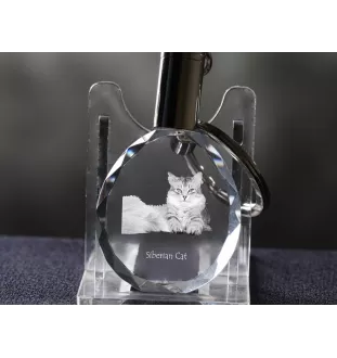 Siberian Cat - Fob with cat photo, crystal key ring in gift box, unique gift by Art-Dog brand