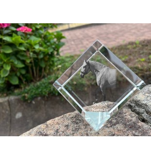 Spanish Norman - crystal cube with a horse picture, horse picture in crystal, cubic paperweight from Art-Dog brand
