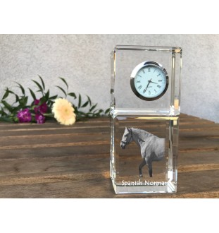 Spanish Norman - crystal clock with a photo, photo of a horse in crystal, personalized desk clock by Art-Dog brand