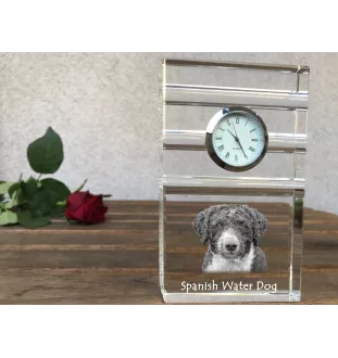 Spanish Water Dog - glass clock with a photo, photo of a dog in crystal, personalized standing office clock by Art-Dog brand
