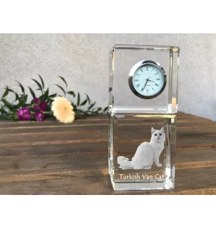 Turkish Van Cat - crystal clock with a photo, photo of a cat in crystal, personalized desk clock by Art-Dog brand
