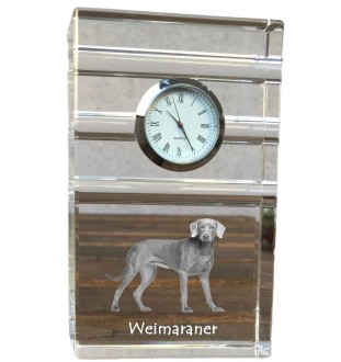 Weimaraner, Grey Ghost - glass clock with a photo, photo of a dog in crystal, personalized standing office clock by Art-Dog brand