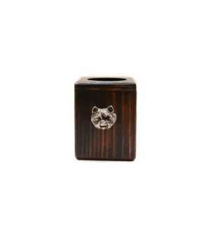 We present a collection of candle holders for lovers of purebred dogs. The candle holder is suitable for a tealight candle. It is made of solid wood, painted in a dark, pleasant color.