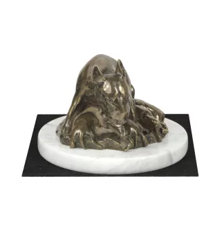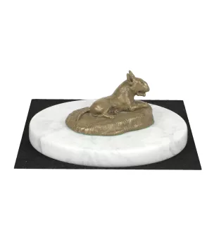 Le Bull Terrier, facilement reconnaissable à sa tête en forme d'œuf et à ses petits yeux triangulaires, est un chien robuste et musclé, connu pour son esprit vif et parfois têtu.Idéal pour les propriétaires qui peuvent offrir une éducation ferme et cohérente, il est affectueux avec sa famille mais peut être réservé avec les étrangers.