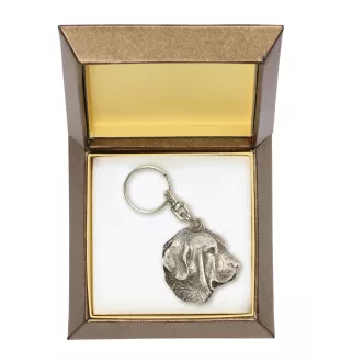Berger du Caucase - Porte-clés argenté avec un chien dans une boîte cadeau,...