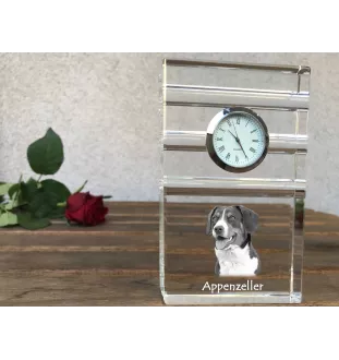 Bouvier Appenzellois, Bouvier de l'Appenzell - une horloge en verre avec une photo, une photo de chien dans un cristal, une horloge de bureau personnalisée de la marque Art-Dog