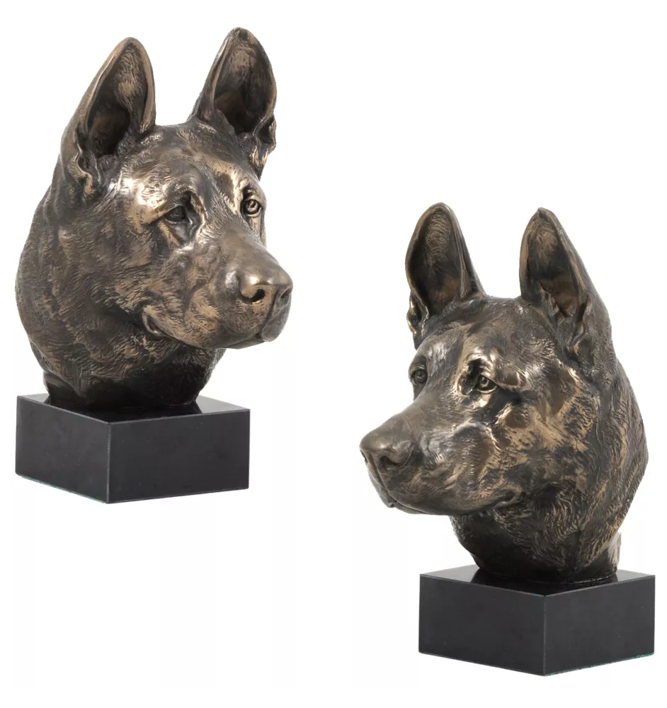 Berger allemand, Berger d'Alsace, Berger alsacien - Statue de chien, buste sur socle en pierre, sculpture, trophée pour exposition canine par la marque Art-Dog