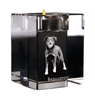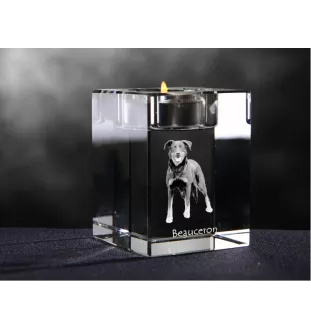 Beauceron, berger de Beauce, berger francais, bas-rouge - Bougeoir avec photo de chien, porte bougie en cristal, cadeau personnalisé par la marque Art-Dog