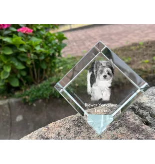 Biewer Yorkshire terrier - un cube de cristal avec une photo, une photo de cheval dans le cristal, un presse-papiers cubique de la marque Art-Dog