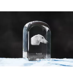 Barzoi, Levrier De Chasse Russe, Lévrier russe - un cube de cristal avec une photo, une photo de chien dans le cristal, un presse-papiers cubique de la marque Art-Dog