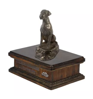 Boxer V - urne pour cendres de chien, urne personnalisée avec une statuette, urne en bois avec un chien de la marque Art-Dog