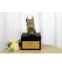 L'urne en bois est fabriquée en bouleau, ce qui la rend durable et résistante. L'urne est dotée d'une fermeture élégante et d'une plaque dorée avec une gravure noire. Le fond de la boîte est fini avec des anneaux en feutre pour éviter de rayer les meubles lors du transport. La figurine du chien est en bronze coulé à froid, ce qui permet de conserver l'apparence et la durabilité du bronze tout en réduisant le prix et le poids de la figurine. Le style classique des urnes les rend intemporelles.