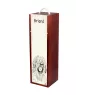 La boîte est en bois, avec un couvercle en MDF. L'impression est durable et résistante à la décoloration. Il y a une poignée pratique en corde sur le dessus de la boîte, et à l'intérieur se trouve un loquet maintenant la bouteille en place pendant le transport. La boîte est de taille standard pour une bouteille de vin.