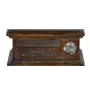 Cette urne unique a été conçue pour permettre une personnalisation. Les plaques de bois visibles à l'avant seront gravées avec les détails que vous fournirez, tels que le nom du chien, la date de naissance et de décès, ainsi qu'une citation. Un emblème argenté estampé avec l'image de la race embellira la composition. Cette urne en bois faite à la main se distingue par son esthétique élevée et son design classique. Décorée d'une couronne en bois, elle est équipée de poignées en laiton pratiques. Au centre du couvercle est solidement fixée une statuette unique de la collection Art-Dog. La figurine du chien reflète les caractéristiques distinctives de la race. Le couvercle peut être facilement retiré pour placer les cendres à l'intérieur de l'urne.