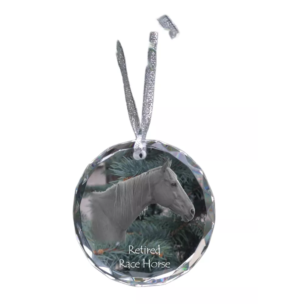 Cheval de course à la retraite - boule de Noël en cristal avec une photo, photo de cheval dans le cristal, décoration personnalisée pour sapin de Noël de la marque Art-Dog