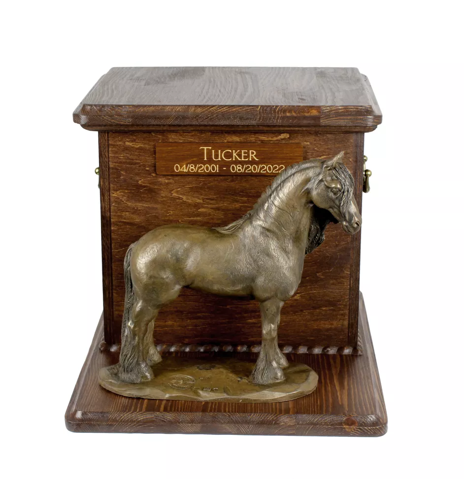 Jument de race Frisonne - urne pour cendres de cheval avec statuette, urne personnalisée avec gravure, grande boîte pour cendres de cheval de la marque Art-Dog