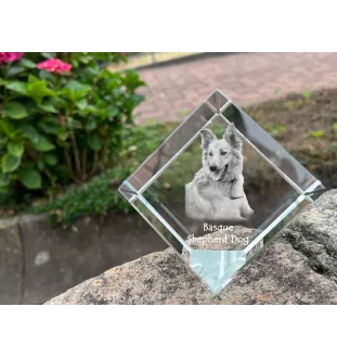 Berger basque - un cube de cristal avec une photo, une photo de cheval dans le cristal, un presse-papiers cubique de la marque Art-Dog