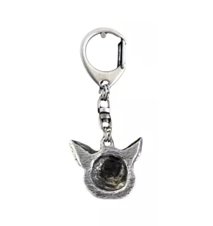 Chihuahua à poil court - Porte-clés argenté avec un chien dans une boîte cadeau, décoration de sac à main, pendentif de sac à dos par la marque Art-Dog