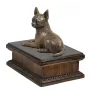 Cette urne en bois, fabriquée à la main, se distingue par son esthétique élevée et son design classique. Le récipient est orné d'une couronne en bois et est équipé de poignées en laiton pratiques. Au centre du couvercle est solidement fixée une statuette exceptionnelle de la collection Art-Dog. La figurine de chien reflète les caractéristiques distinctives de la race. Vous pouvez facilement retirer le couvercle pour placer les cendres à l'intérieur de l'urne.