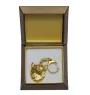 Chihuahua à poil long - Porte-clés doré avec chien dans boîte cadeau, décoration de sac à main, accessoire de luxe de la marque Art-Dog