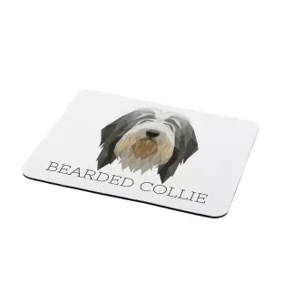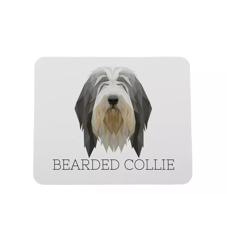 Collie Barbu, Bearded collie, Parfois appelé colley barbu - tapis de souris géométrique avec photo et inscription Art-Dog