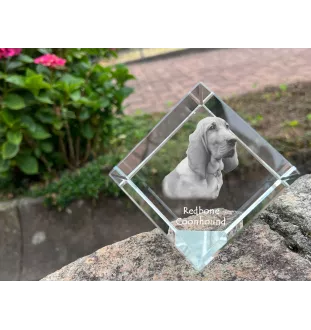 Redbone Coonhound - un cube de cristal avec une photo, une photo de cheval dans le cristal, un presse-papiers cubique de la marque Art-Dog