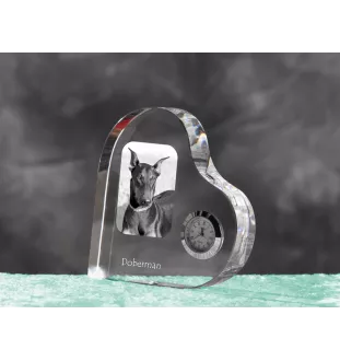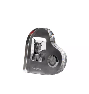 Dobermann, Dobermann Pinscher - horloge en cristal avec une photo de chien, horloge de table en forme de cœur, horloge debout personnalisée de la marque Art-Dog