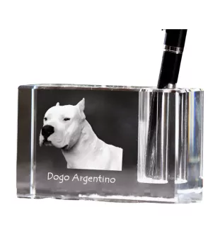 Dogue argentin, Dogo argentino - Porte-stylos, organiseur en cristal avec photo de chien, décoration de bureau unique par la marque Art-Dog