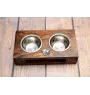 Nous présentons un support à deux bols pour chien fait à la main, qui allie fonctionnalité et élégance. Fabriqué en Pologne, il est en bois massif, ce qui garantit sa durabilité et sa haute qualité. Le support a une forme classique et rectangulaire qui s'intégrera parfaitement dans n'importe quel intérieur. Ornée d'un bas-relief argenté d'un chien de race, il devient non seulement un élément pratique mais aussi décoratif. Le set comprend deux bols en acier, hygiéniques et faciles à nettoyer.