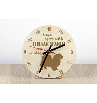 Épagneul tibétain, Épagneul du Tibet - horloge avec chien, horloge en bois, horloge murale pour les amoureux des chiens, horloge de bureau et étagère, Art-Dog