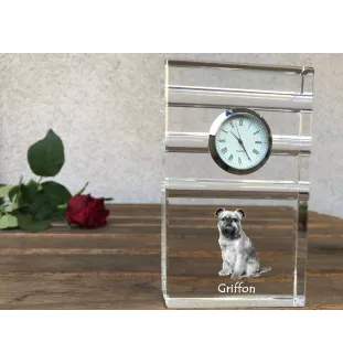 Griffon bruxellois - une horloge en verre avec une photo, une photo de chien dans un cristal, une horloge de bureau personnalisée de la marque Art-Dog
