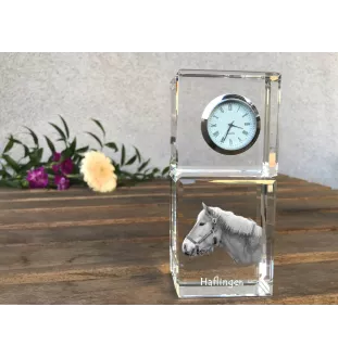 Haflinger - montre en cristal avec photo, photo de cheval dans le cristal, horloge de bureau personnalisée de la marque Art-Dog
