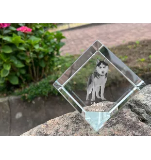 Husky de Sibérie, Husky sibérien - un cube de cristal avec une photo, une photo de cheval dans le cristal, un presse-papiers cubique de la marque Art-Dog