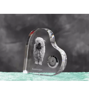 Komondor - horloge en cristal avec une photo de chien, horloge de table en forme de cœur, horloge debout personnalisée de la marque Art-Dog