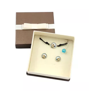Ensemble de bijoux unique avec des photos de vos amis à quatre pattes. Fabriqué à la main avec passion et souci du détail. Boucles d'oreilles et bracelet avec des photos originales sous verre bombé et montées sur une base hypoallergénique (sans nickel) de couleur argent. Boucles d'oreilles avec tiges rondes et fermoirs, diamètre de la photo 10 mm. Bracelet sur cordon, longueur réglable avec une chaîne de 16-18,5 cm, diamètre de la photo 12 mm. La longueur du bracelet peut être ajustée sur demande. Les photos sont de haute qualité, aux couleurs vives, imprimées sur du papier photographique de haute qualité. L'ensemble est emballé dans une boîte cadeau élégante. Personnalisation GRATUITE : Si vous rêvez de bijoux uniques avec votre propre animal de compagnie, ou avec n'importe quelle autre photo, il est désormais possible de passer une commande personnalisée à partir de votre propre photo ou graphique :) Attention ! Les bijoux ne sont pas étanches. Il est recommandé de les retirer avant de nager, de prendre un bain ou d'aller au sauna. Les couleurs peuvent légèrement différer du modèle affiché en raison des différences d'affichage sur les écrans. Il est également possible de graver le dos du bracelet ou du collier de notre collection. Pour acheter le service de gravure, saisissez le numéro de l'enchère dans la barre de recherche Allegro : 12597945162. Ensemble de bijoux Briard avec votre photo dans une boîte.