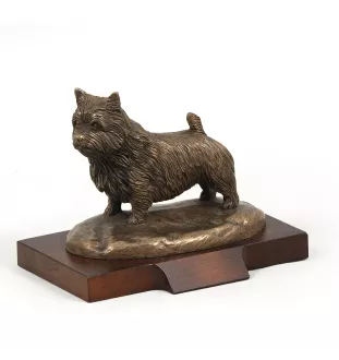 Norwich Terrier, Terrier de Norwich - statuette de chien, figurine sur un socle blanc, trophée pour exposition de chiens de la marque Art-Dog