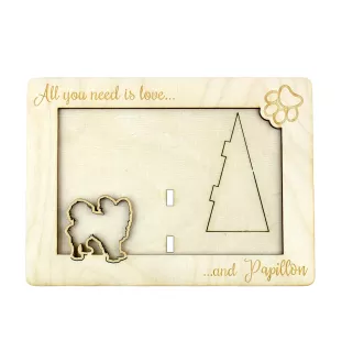 Papillon, Épagneul nain continental papillon - Cadre photo, cadre en bois gravé, un joli gadget pour l'amoureux des chiens par Art-Dog